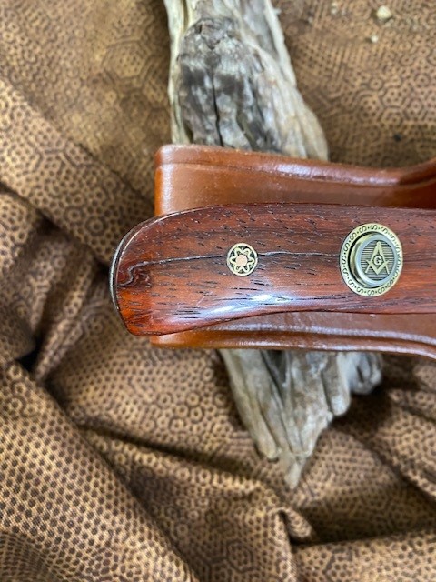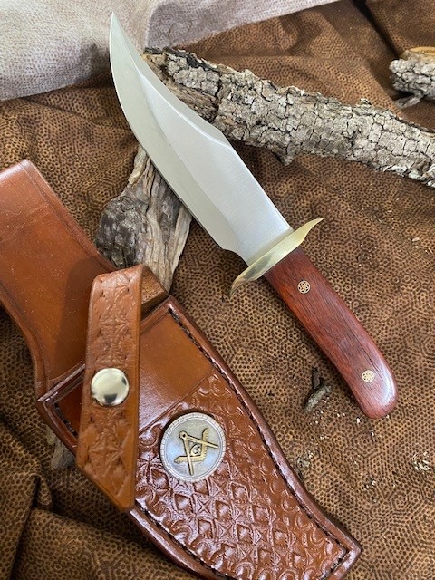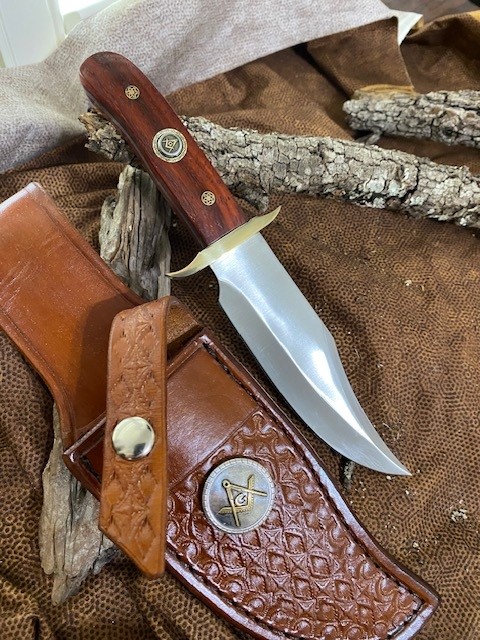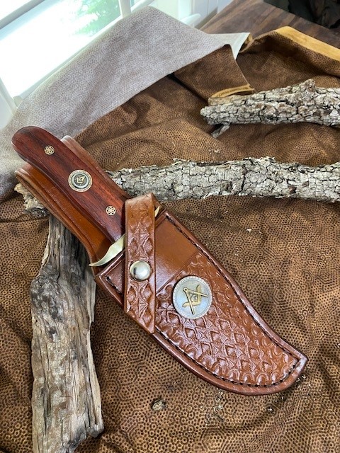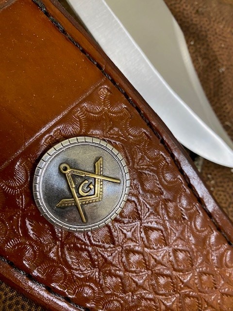 · Sheath: A beautiful, high quality leather sheath, hand crafted and tooled by a family of professional leather Artisans here in the U.S. IS INCLUDED with the knife and has a Masonic Square & Compasses Concho affixed to it.