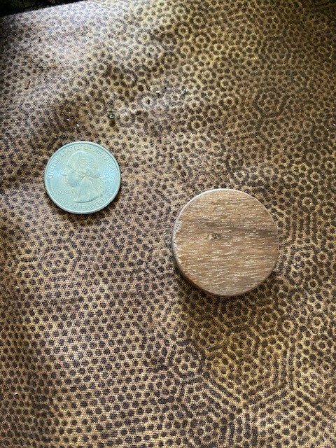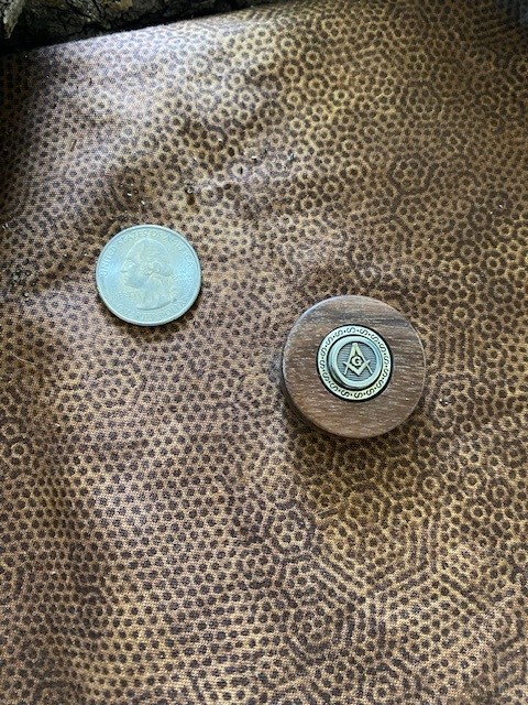 The embedded Masonic Square & Compasses emblem is the same as I use on my knives. Token Diameter: 1-1/4″; Thickness: between 5/16″ and 3/8″. Unstained. Buffed to a shine.
