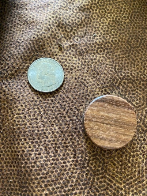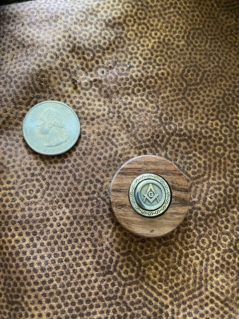 The embedded Masonic Square & Compasses emblem is the same as I use on my knives. Token Diameter: 1-1/4″; Thickness: between 5/16″ and 3/8″. Unstained. Buffed to a shine.