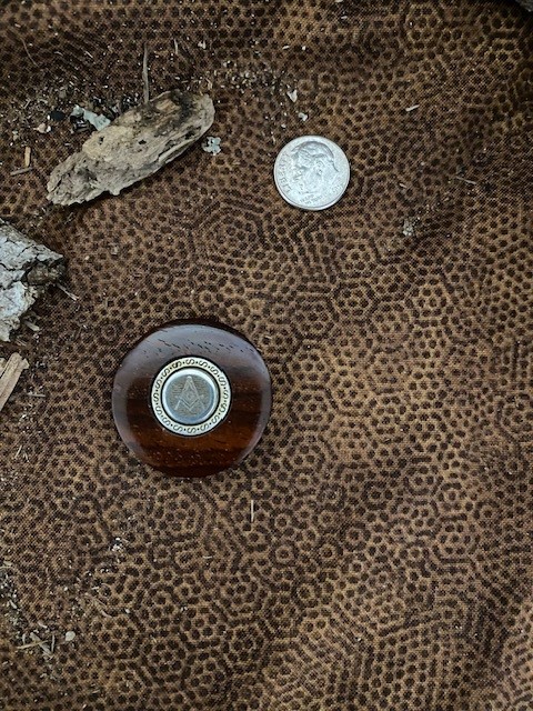The embedded Masonic Square & Compasses emblem is the same as I use on my knives. Token Diameter: 1-1/4″; Thickness: between 5/16″ and 3/8″. Unstained. Polished.