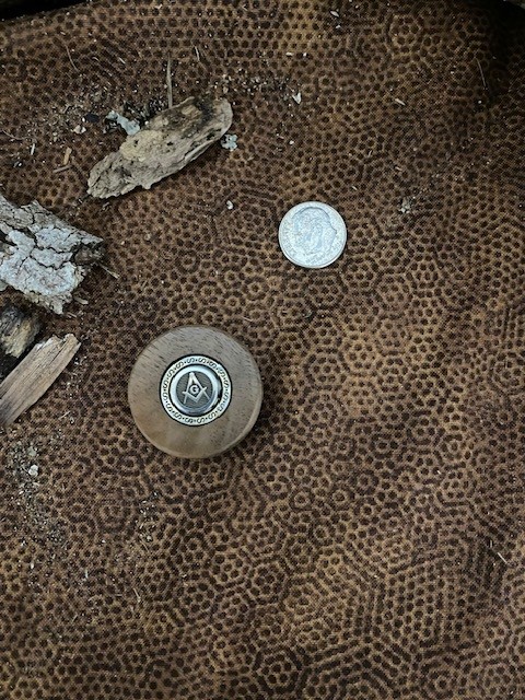 The embedded Masonic Square & Compasses emblem is the same as I use on my knives. Token Diameter: 1-1/4″; Thickness: between 5/16″ and 3/8″. Unstained. Polished.
