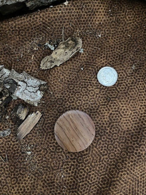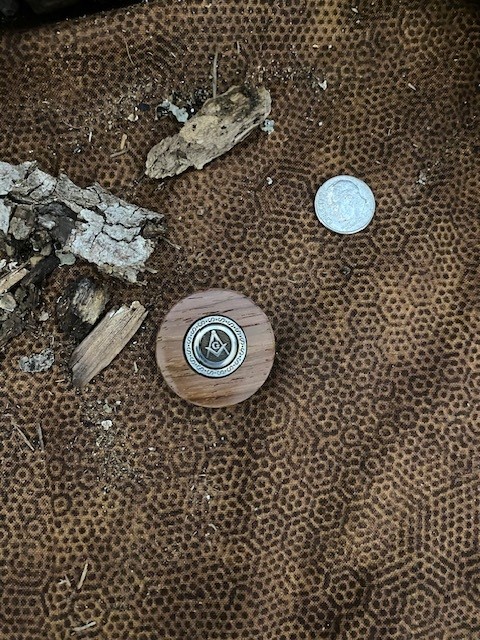 The embedded Masonic Square & Compasses emblem is the same as I use on my knives. Token Diameter: 1-1/4″; Thickness: between 5/16″ and 3/8″. Unstained. Polished.