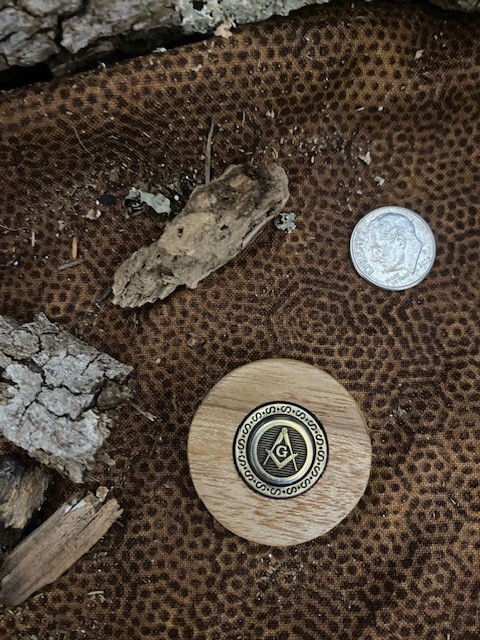 The embedded Masonic Square & Compasses emblem is the same as I use on my knives. Token Diameter: 1-1/4″; Thickness: between 5/16″ and 3/8″. Unstained. Polished.