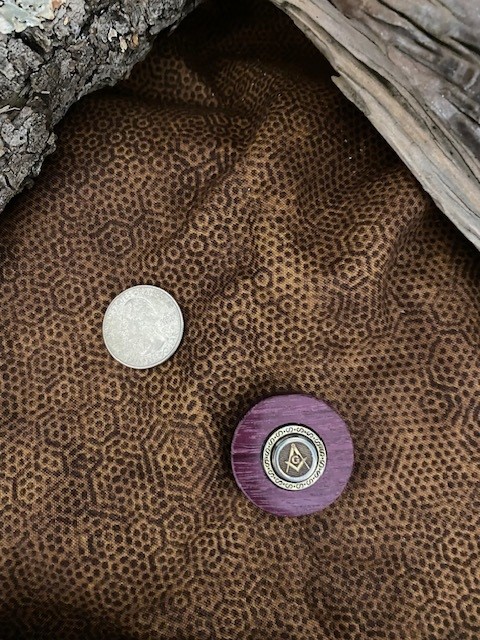The embedded Masonic Square & Compasses emblem is the same as I use on my knives. Token Diameter: 1-1/4″; Thickness: between 5/16″ and 3/8″. Unstained. Buffed to a shine.