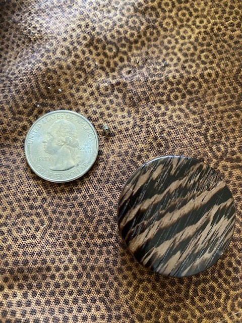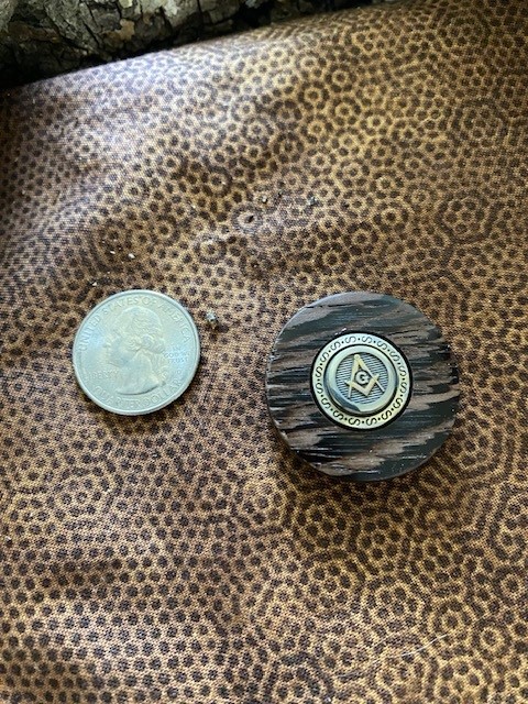 The embedded Masonic Square & Compasses emblem is the same as I use on my knives. Token Diameter: 1-1/4″; Thickness: between 5/16″ and 3/8″. Unstained. Buffed to a shine.