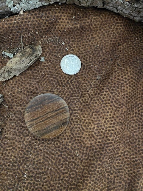 This ‘Pocket Token’ is made from the Exotic wood “Bocote”.. It is found in Mexico and Central and South America; It has a yellowish brown body with dramatic dark brown to almost black stripes. Sometimes has swirling “eyes” and other figuring. A nice pocket reminder!