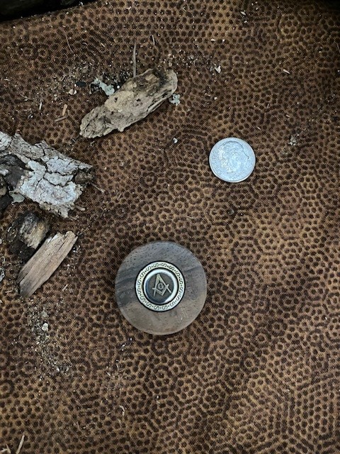 The embedded Masonic Square & Compasses emblem is the same as I use on my knives. Token Diameter: 1-1/4″; Thickness: between 5/16″ and 3/8″. Unstained. Polished.