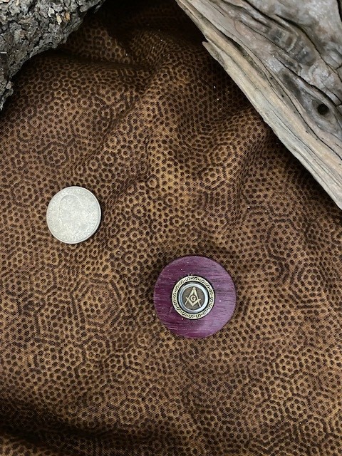 The embedded Masonic Square & Compasses emblem is the same as I use on my knives. Token Diameter: 1-1/4″; Thickness: between 5/16″ and 3/8″. Unstained. Buffed to a shine.